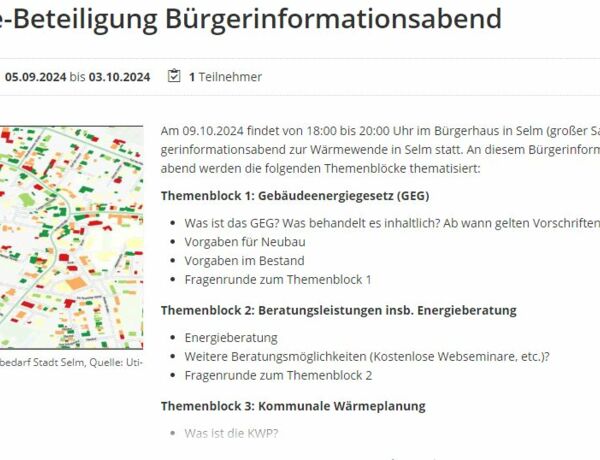 Weiterlesen … Bürger können sich an kommunaler Wärmeplanung beteiligen