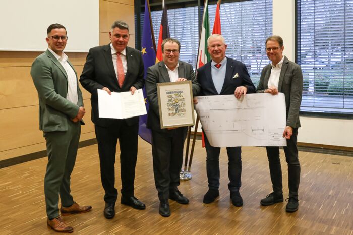 Es ist ein Projekt, an dem viele Partner beteiligt sind: An der Kreisgrenze zum Kreis Coesfeld in Selm wird die K2, Neue Nordkirchener Straße, erneuert und erhält einen Zweiwegeradweg auf der südlichen Seite. Dafür hat NRW-Verkehrsminister Krischer am Donnerstag, 12. Januar den Förderbescheid persönlich im Kreishaus übergeben. Gemäß Radverkehrskonzept des Kreises wird an der K2 ein kleiner Mehrzweckstreifen durch einen größeren Zweigeradweg ersetzt. Dieser wird 2,50 Meter breit und verbindet Selm mit Nordkirchen im Kreis Coesfeld. „Die Coesfelder haben ihr Stück bereits gebaut, sodass wir dort jetzt anschließen können“, so Jürgen Busch, Sachgebietsleiter Straßenbau Kreis Unna.